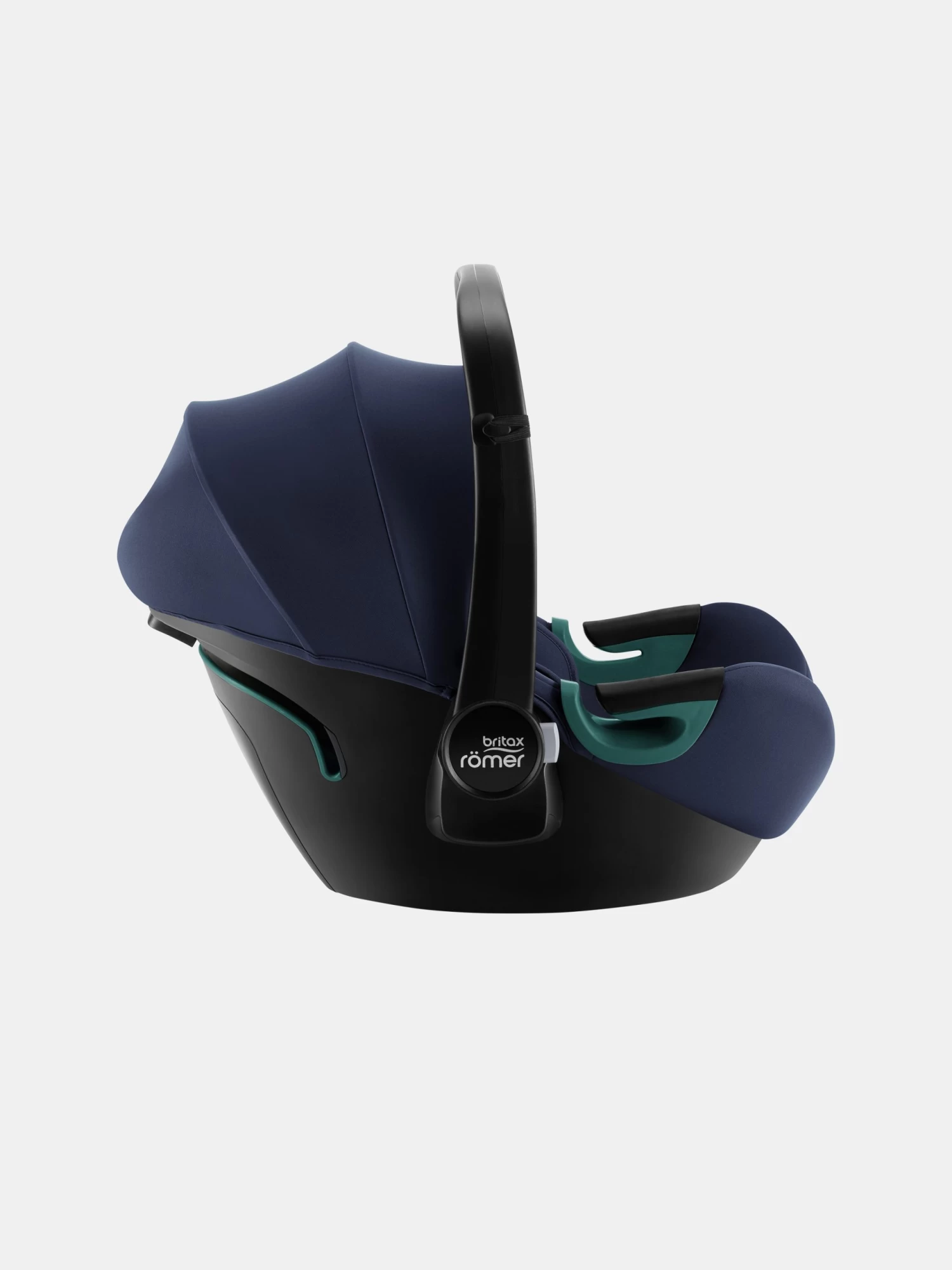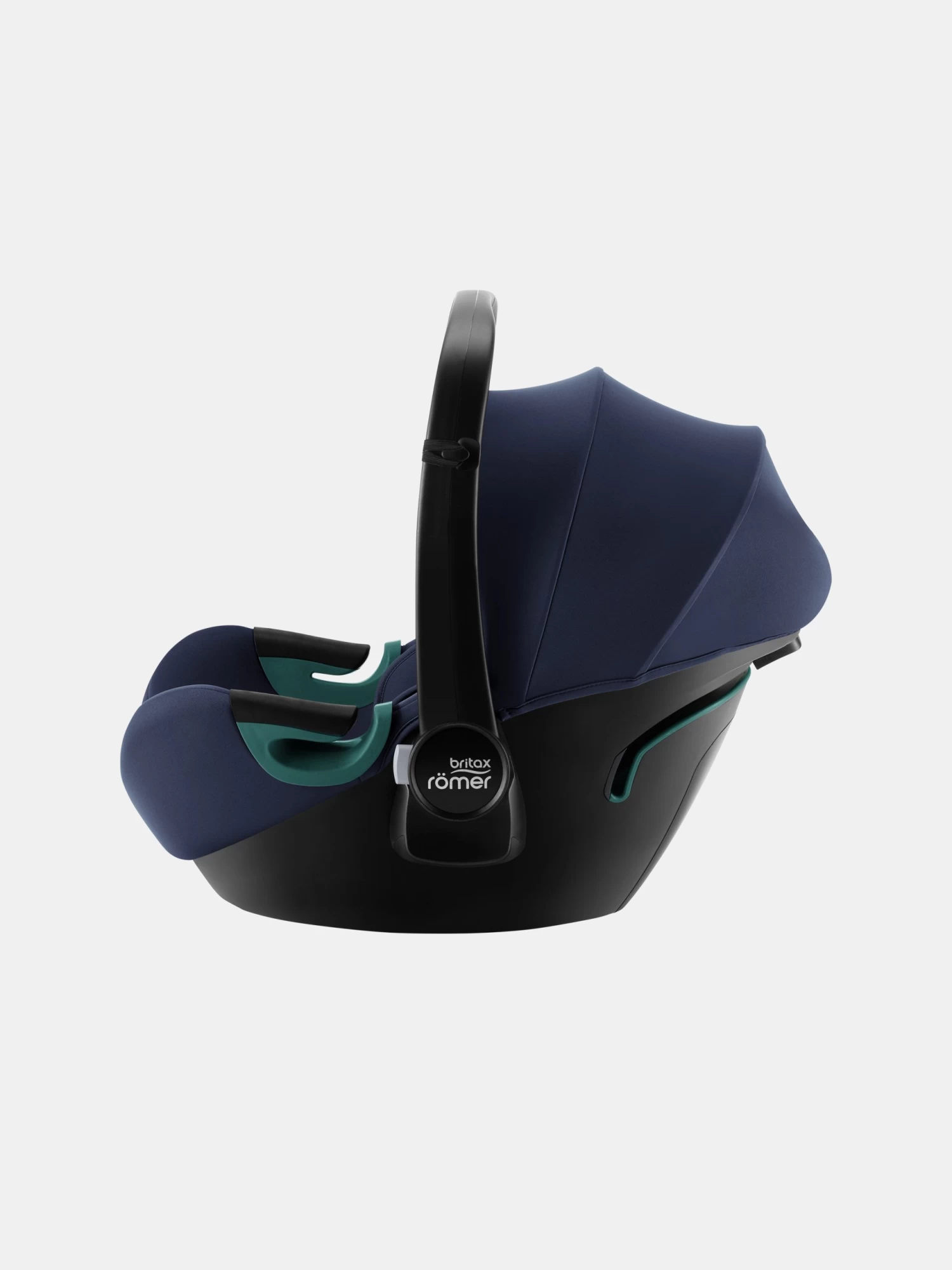 Der Tragebügel ist ebenfalls verstellbar, wenn man das Kind in die Babyschale legt.